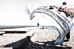Oltre all’equilibrio, una serie fotografica perfetta nelle sue componenti, deve perseguire l’intelligibilità, deve saper parlare un linguaggio comune a tutti i suoi fruitori: la scelta di trattare il tema dell’alterità e della sua auspicabile mediazione (e quindi integrazione), tramite il racconto del mestiere dell’ambulante lungo i litorali del paese, è una scelta importante perché ci proietta in un luogo familiare, un ricordo che ogni estate si rinnova per molti italiani e quindi un momento che, più o meno tutti, possiamo riconoscere.