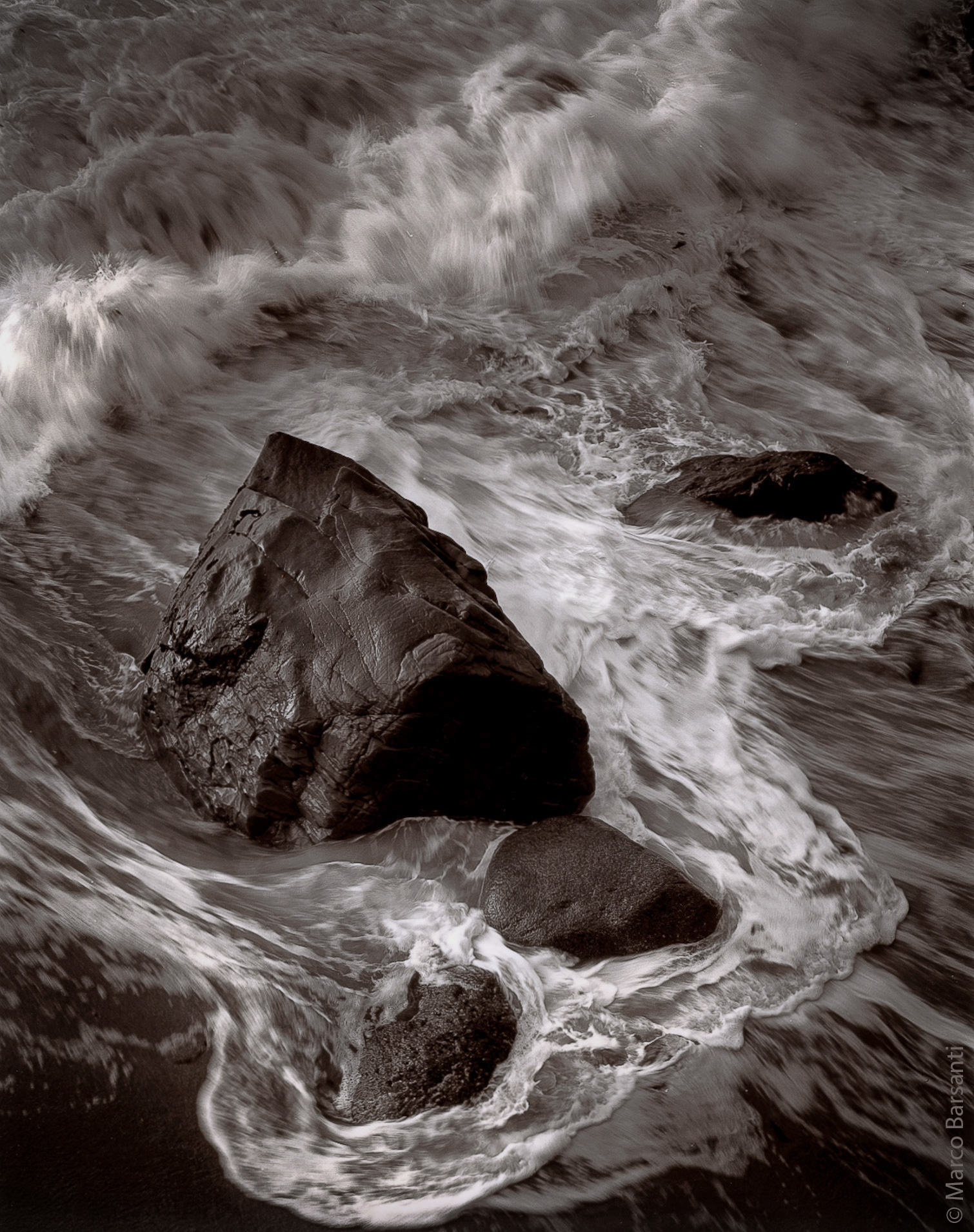 Marco Barsanti,Scogli, Garrapata Beach, 1994, stampa al clorobromuro d’argento da negativo 4×5, intonata al Selenio.