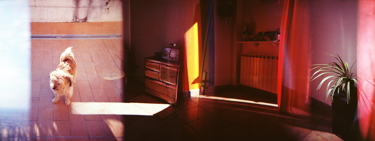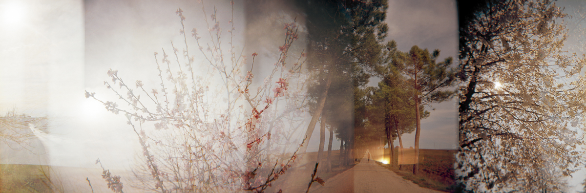 Mai come in questo caso, il significante (il modo di produrre queste immagini) risulta il veicolo perfetto di quel concetto semplice e salvifico espresso dal titolo: la scelta di scattare in multi-esposizione (con una Holga 120 che permette di gestire in modo creativo l’avanzamento della pellicola), costruendo sedimentazioni di ricordi, formate dai dieci a venti scatti (e a volte anche di più), distanti temporalmente l’uno dall’altro anche settimane o addirittura mesi. Gli stessi luoghi rappresentati, così diversi fra loro, circoscritti e imbrigliati dalla medesima cornice, diventano luoghi dell’anima, crocevia sinceri come pugni in faccia, dove le cose “accadono”, dove le cose improvvisamente prendono fuoco, dentro. È lì che si è trovata Tiziana, in questi ultimi cinque anni. Con gli occhi aperti, l’istinto inestimabile che le fa vedere la luce, le cose, in quel modo solo suo e nella borsa, fedele compagna, la fotografia.