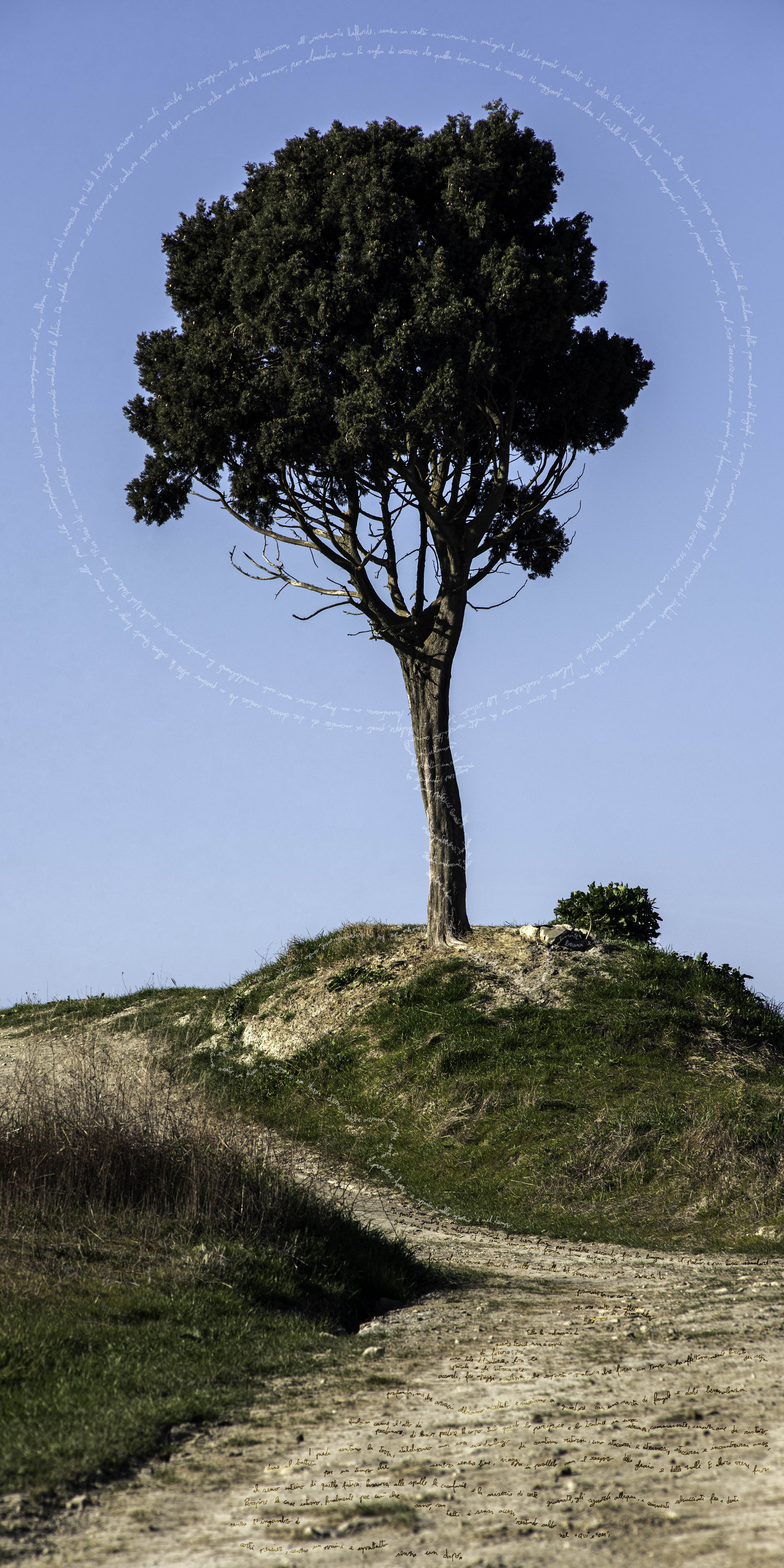 A inizio gennaio, il Museo del Paesaggio di Castelnuovo Berardenga, tramite Valentina Lusini, docente di Antropologia dell’arte e delle rappresentazioni, incaricata di occuparsi della realizzazione dei contenuti in vista del suo nuovo allestimento, mi ha commissionato una fotografia destinata a un grande pannello posto all’ingresso degli ambienti museali. L’impresa non era semplice sia per le dimensioni che per il taglio dell’immagine, un frame con proporzioni vicine al formato panoramico, ma posto in verticale. Alla fine ho selezionato quattro scatti seguendo lo stile dei lavori che ho prodotto in passato, fondendo immagine fotografica e parola scritta. Colgo l’occasione dell’inaugurazione di oggi per mostrare qui l’opera finale scelta per il museo, il testo che la completa e le altre tre proposte che nei mesi precedenti il lockdown sono riuscito a realizzare meditando sul tema ampio e controverso del paesaggio.